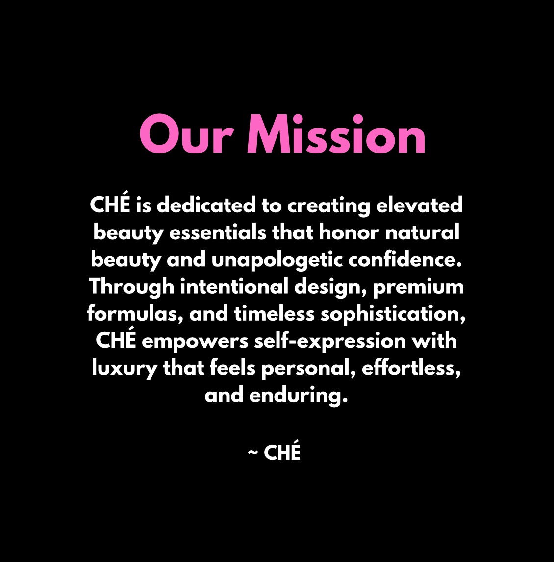 CHÉ is a modern beauty brand defined by refined simplicity and effortless elegance. We create elevated essentials designed to enhance natural beauty with timeless finishes, thoughtful formulas, and understated luxury.